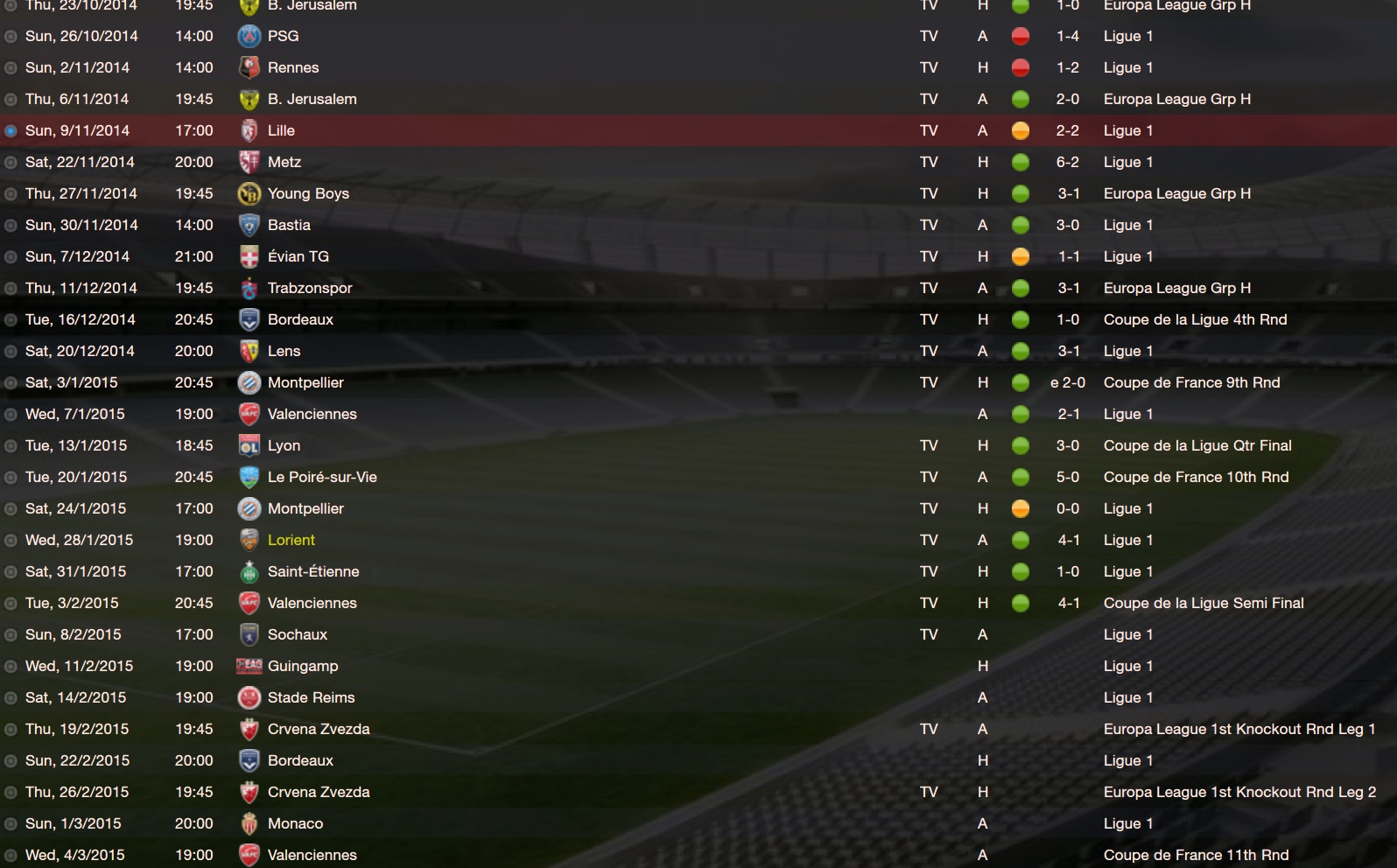 Tough start with Lille, but we managed to pick up a 2-2 draw despite them having the best of the game. Ji Dong-Won and Mathieu Valbuena got the goals for us. Lille twice came back. Was quite happy with that start, especially since it was my first day.