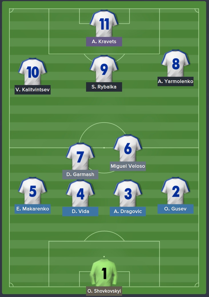 Before I could be 100% sure of who I could sell, I had to decide on a tactic that would fit my best players. Looking at the squad, it was clear that Yarmolenko, Garmash and Dragovic were my best players. I have some really good players in the squad such as Khacheridi and Kravets as well as some really exciting young first teamers, Kalitvintsev being the pick of the bunch.