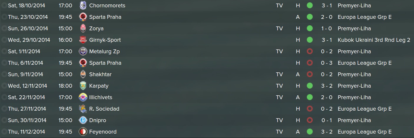 Shakhtar steamrollered us, as I expected them to do due to their vastly superior team. We were incredibly lucky against Karpaty and Feyenoord. Both games we were 3-0 up at half-time, they gave us a scare, but we managed to hold out.