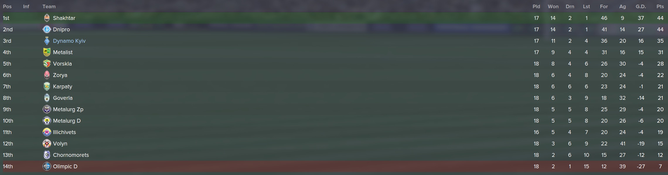 It’s now Mid-January and the team is on its 3 month winter break. I was not aware that Ukraine had such a long break, so it’s been educational. Our last league game was November 30th and we don’t kick another ball in the league until March 1st. There’s the Europa League games that lead us into the league games at the end of February, but more about that in a minute.