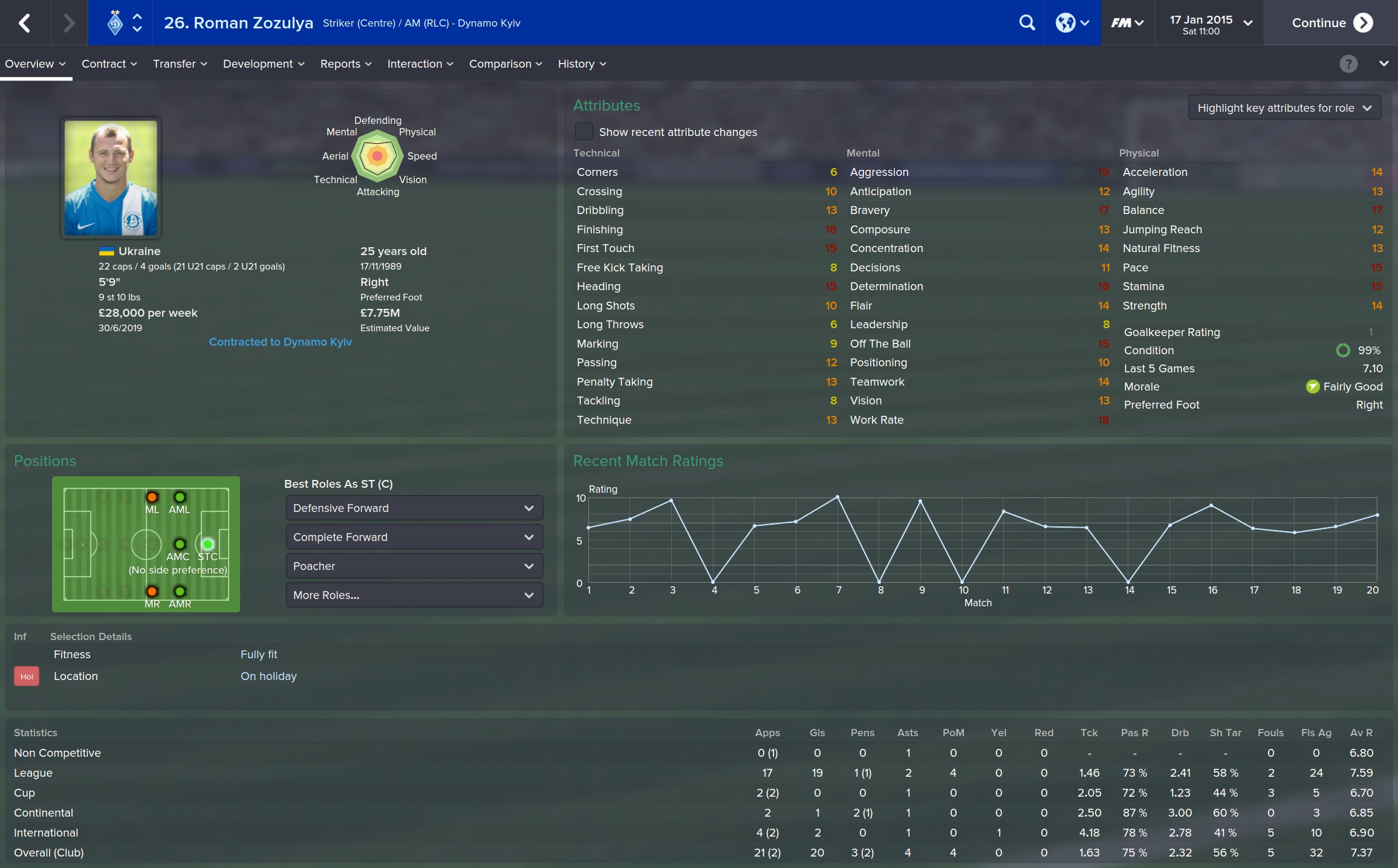 Yarmolenko has also been excellent, as you’d expect. Sergiy Kryvtsov, who I nabbed off of Shakhtar at the start of the season has been a consistent performer for me too. So my signings have been doing pretty good.