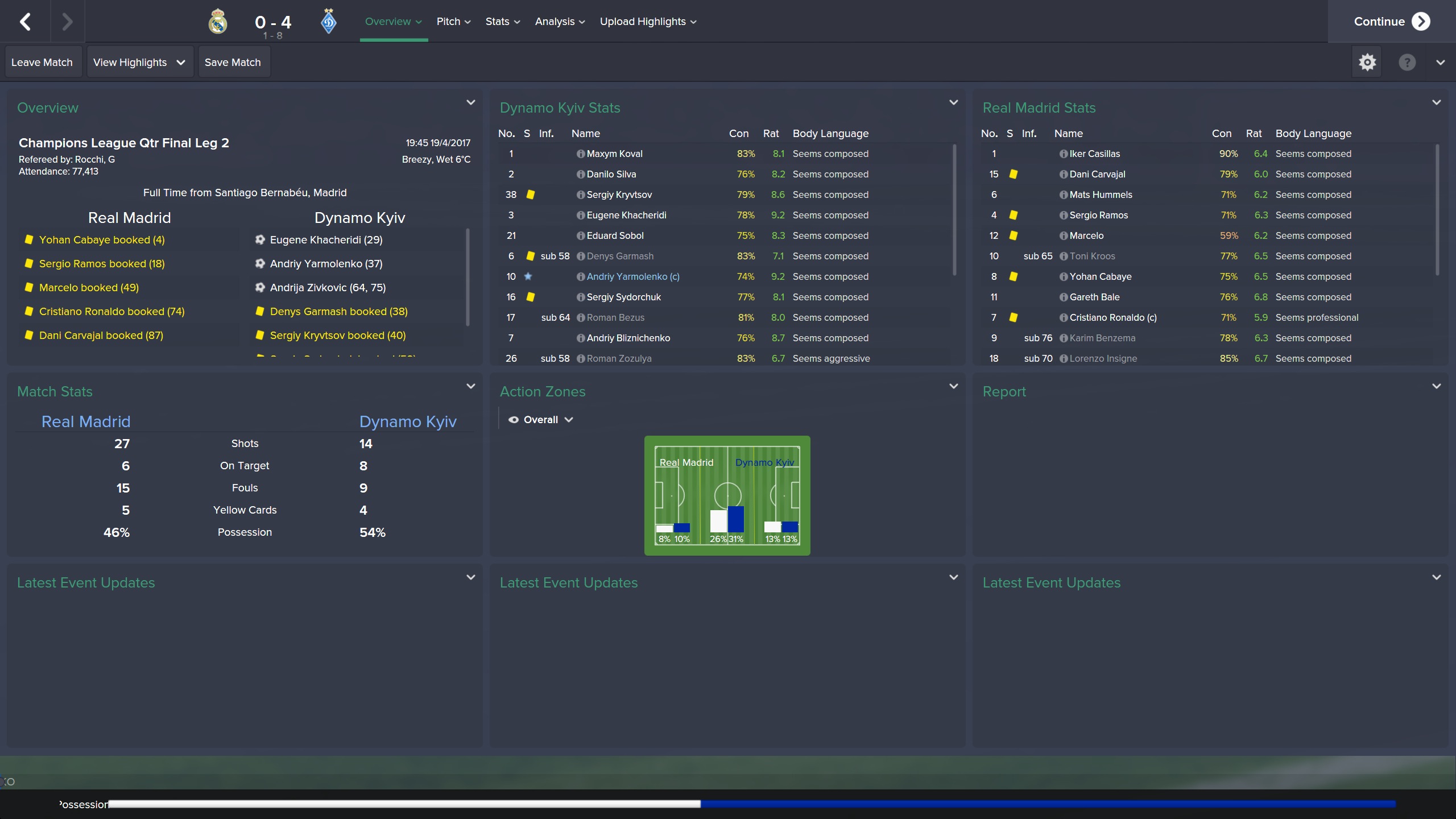 We had a little slump where we lost three out of four games and this was when I implemented those tactical changes which I think helped our season. Defeats to Dnipro, Real Madrid and Metalist came in quick succession. We managed to come back with a couple of great results, including a 3-1 victory over Real Madrid and another 2-1 defeat of Feyenoord.