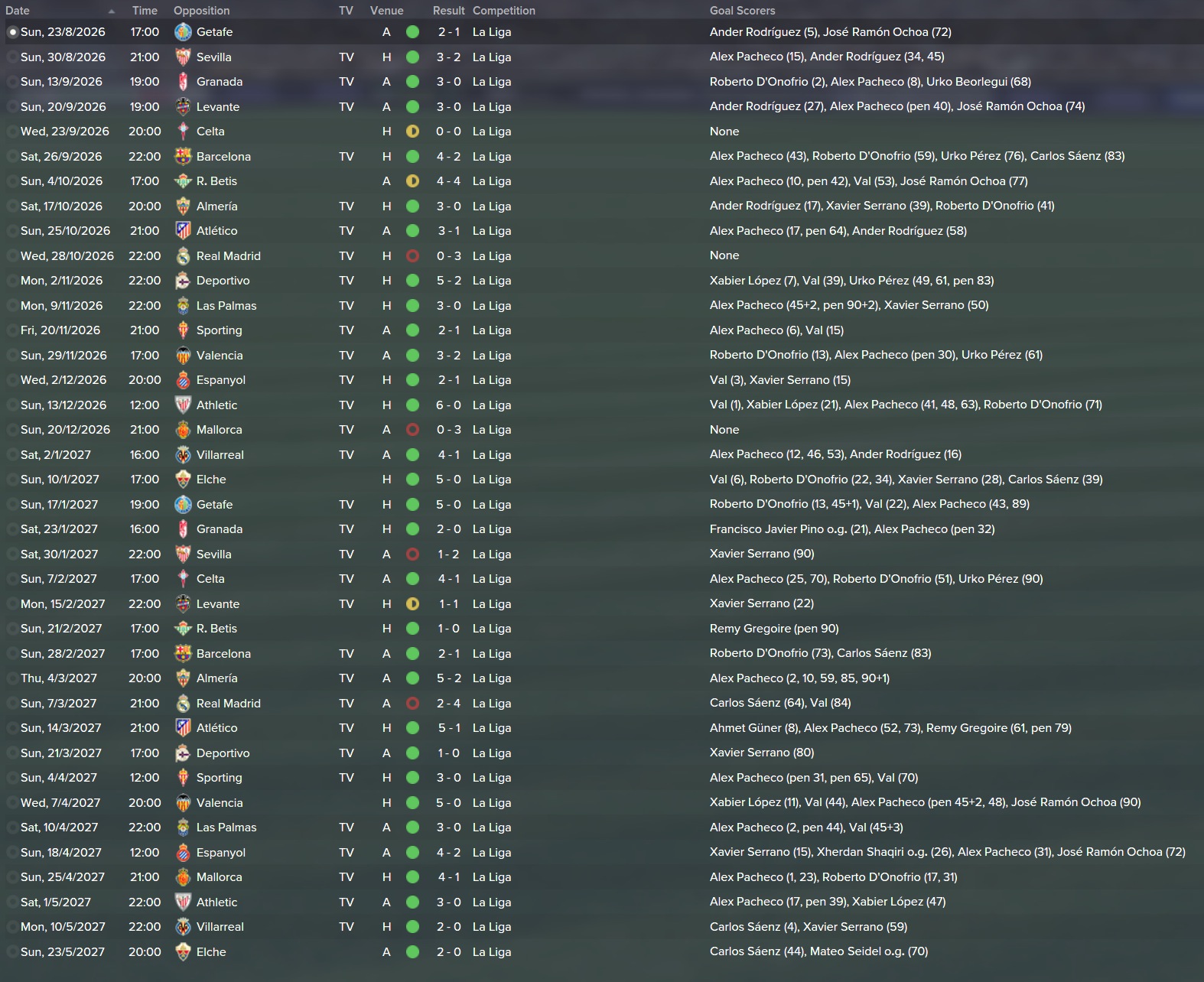 We picked up some nice results along the way, 6-0 against Athletic, 5-1 over Atletico and 4-2 over Barca being the highlights.