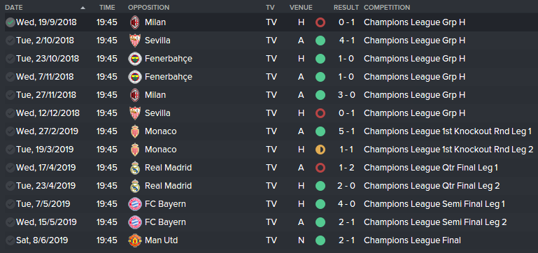 We opened the group with a defeat by Milan, won the next four games before finishing the group off with a defeat by Sevilla. The 4-1 win over Sevilla was an interesting game as two goals were scored in the first 10minutes. Nothing really happened for the next 70minutes but in the last 10, it went mad as we scored three goals to win the tie.