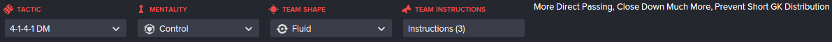 For my mentality, I’ve gone for Control as it’s quite aggressive but is more wary of counter attacks. I’ve opted for a Fluid team shape.