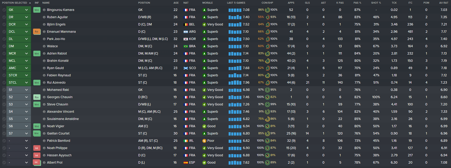 The other signings I made this season did well. Mammana was dependable, Gauld took a while to settle, but he got better as the season came to a close, Engels was understated and Walace went about his job as hoped. Rabiot was a bit inconsistent at times, hopefully next season we’ll find a formation better suited to him.