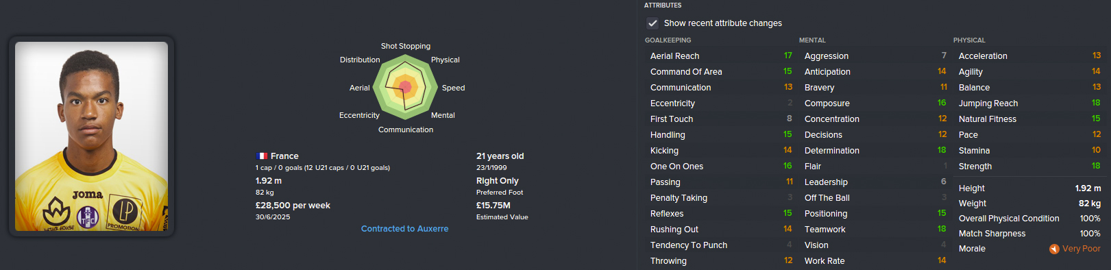 The squad took on the feel of a youth team this season as the average age of the team dropped to just 20 years old. The signings I made were adequate, with Lozano and Gautier scoring and assisting plenty. Touré was assured at the back and Mac Allister was rotated with another youngster, Vigier. Lafont took a while to settle, but ended up winning Goalkeeper of The Year in Ligue 1.