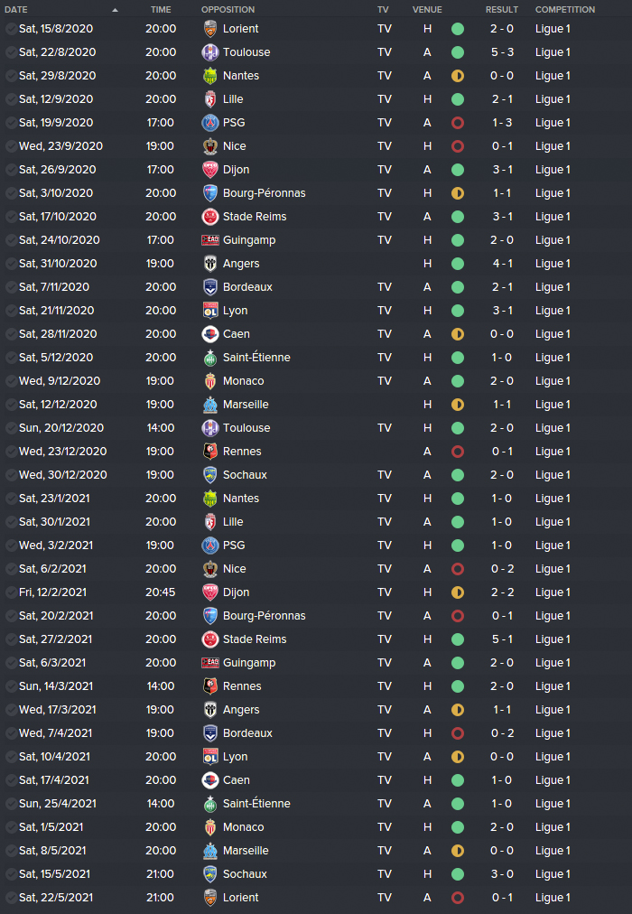 The season started well, three wins out of our first four. We followed that up with two defeats, losing 3-1 to PSG and 1-0 to Nice. We kept conceding silly goals as our new keeper settled in, but we were in great form as we went on a 12 game unbeaten run, winning 9 and drawing 3. We became a bit inconsistent from February. Not winning for three, winning three, not winning for three again.