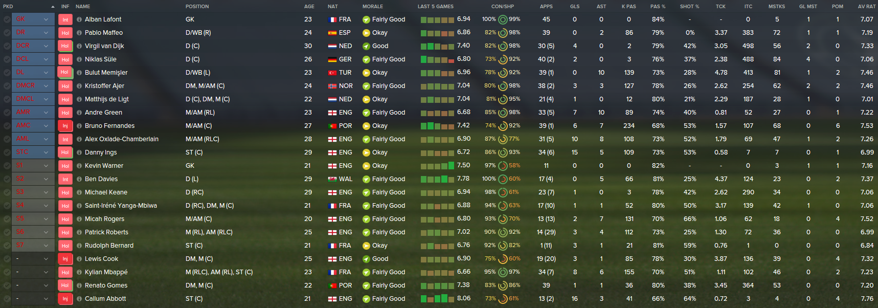 Overall, a great season. Will be looking for a few additions in the summer as I plan to move on Danny Ings and Patrick Roberts. Virgil van Dijk has already agreed to move on to Sevilla and I’m still in need of another option in central midfield.