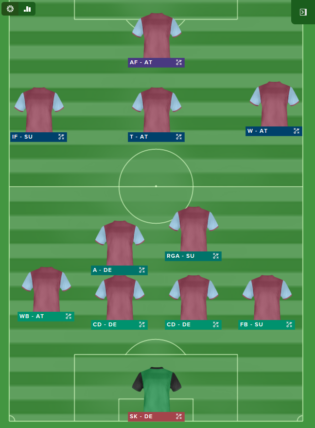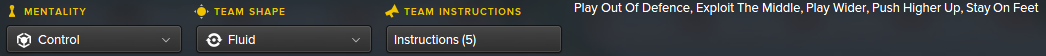 I sometimes change it up a little bit against bigger teams as we can sometimes find ourselves a bit penned in. In those games, I’ll turn on More Direct Passing with Be More Disciplined and remove Play Out Of Defence.