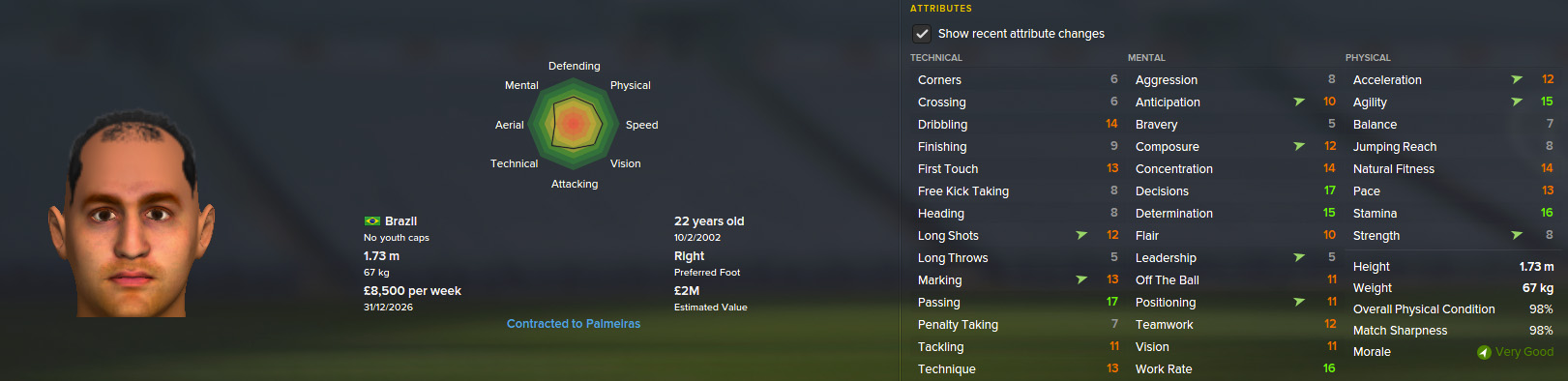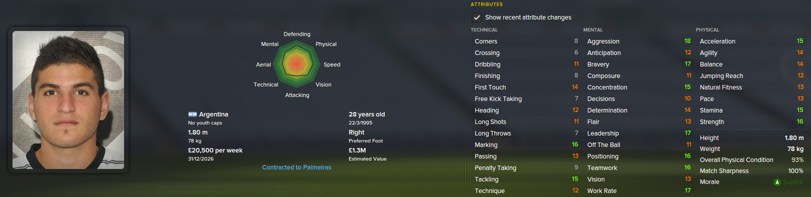 Whilst looking for a central midfielder, I knew I was going to be looking to buy potential. Gonçalves seemed to be the right option, Paranaense weren’t willing to give him away though and I had to stump up £3m. Hopefully it’s worth it in the long run.