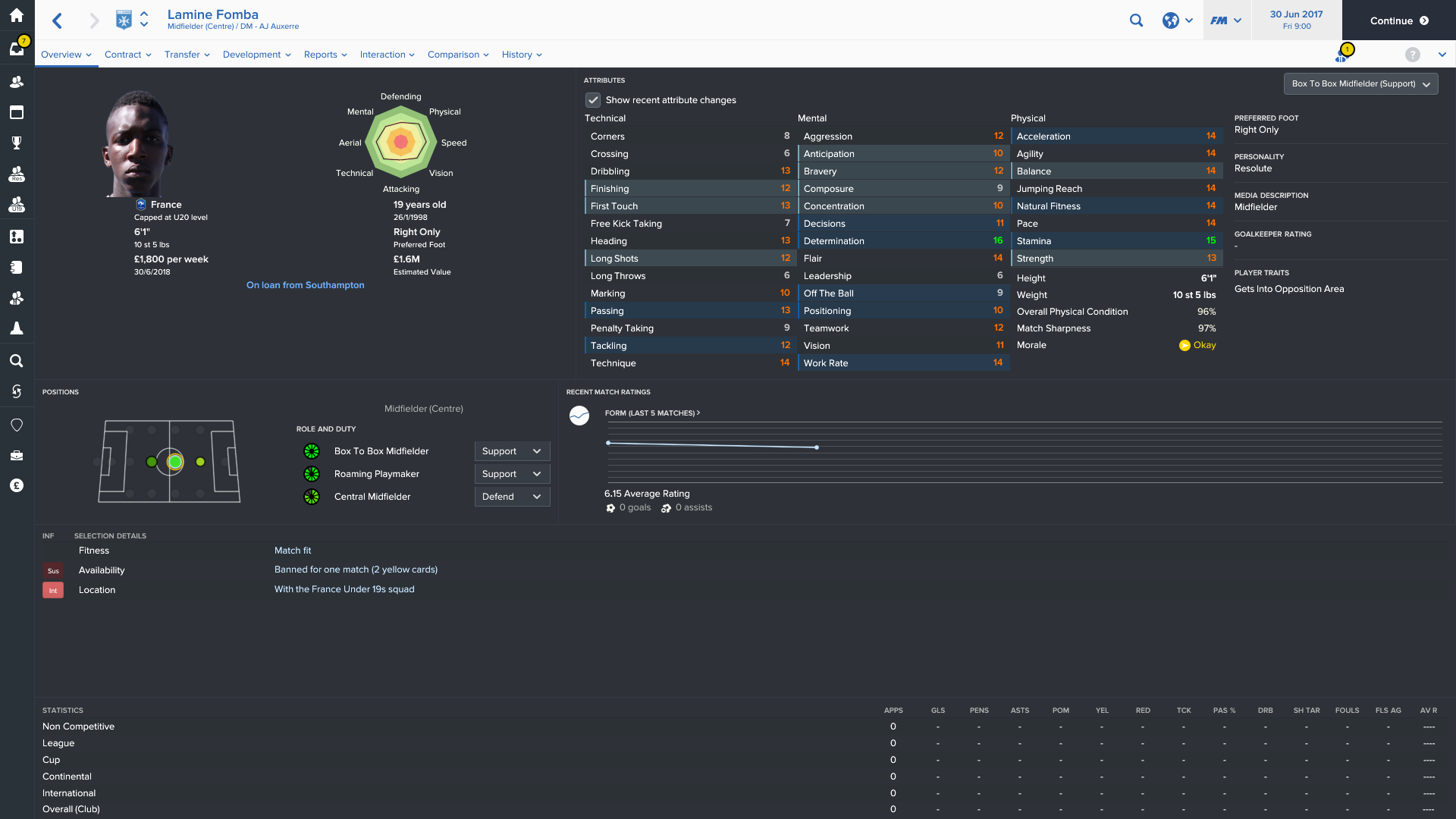 A centre back? Nope. A central midfielder. I had a few injuries in pre-season so I took the decision to get myself someone in on loan. As luck would have it, Lamine Fomba, who we sold to Southampton last season, was available. He looked good and knew the club. Done deal.