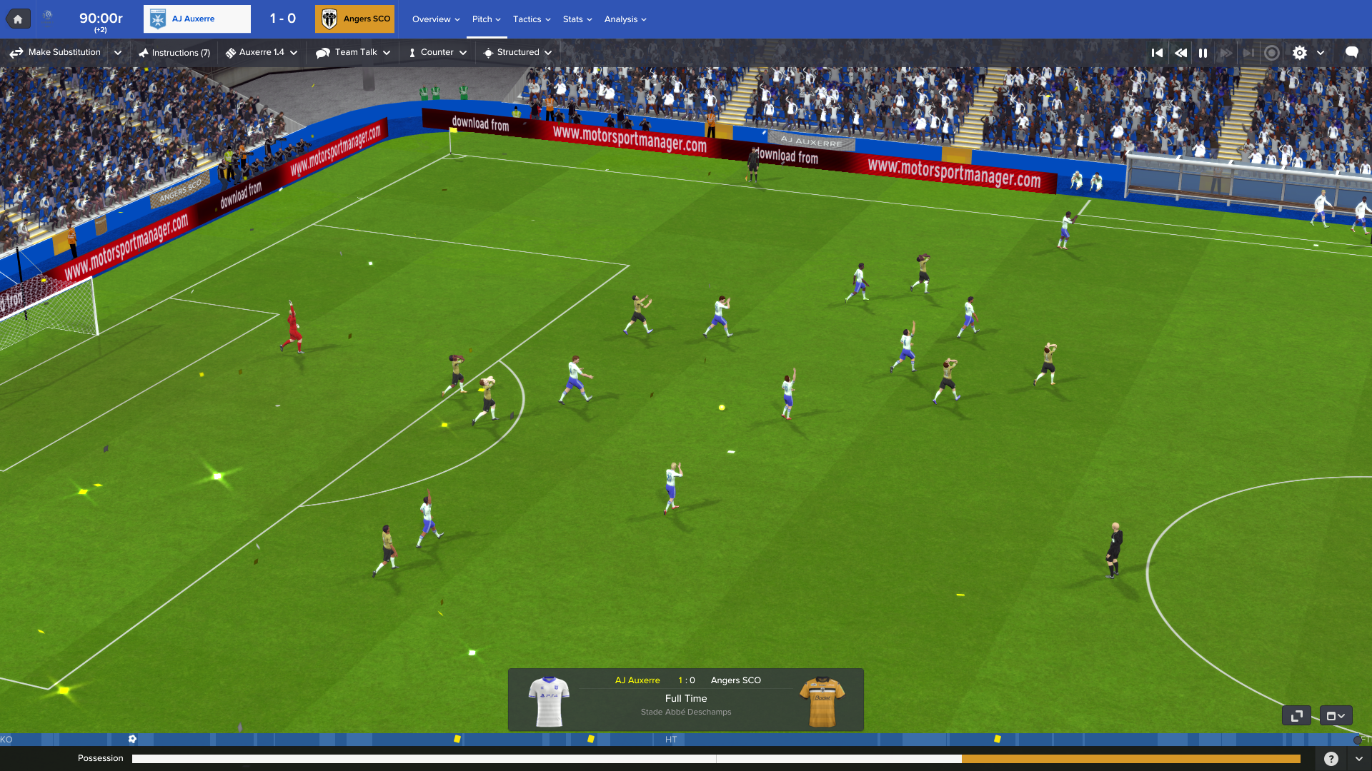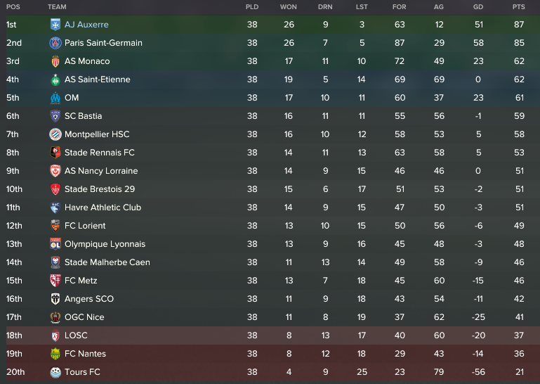 PSG drew 1-1 with St Etienne in their second last game which meant we had a two point lead going into the final game. I needed to match or better their result to win the league. They faced Marseille away and I faced Angers at home.
