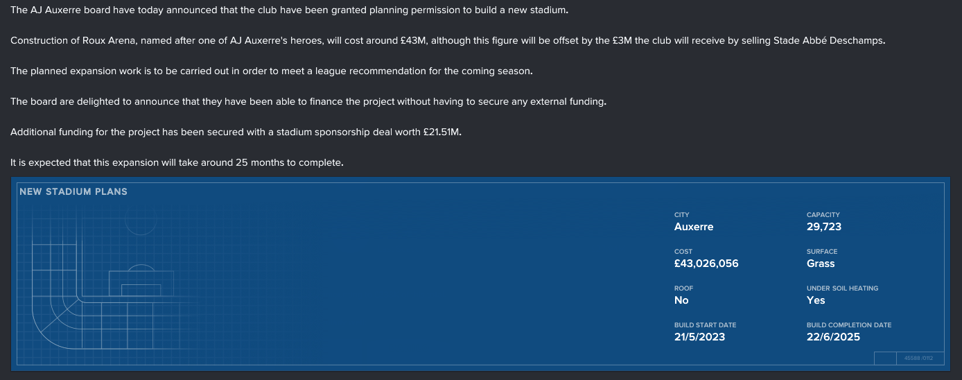 Our current capacity is 21,379 so it’s not a huge upgrade, but I suspect we’ll be able to expand it? The funds from player sales is looking like clever business now. The board must have been waiting for us to have enough money in the bank.