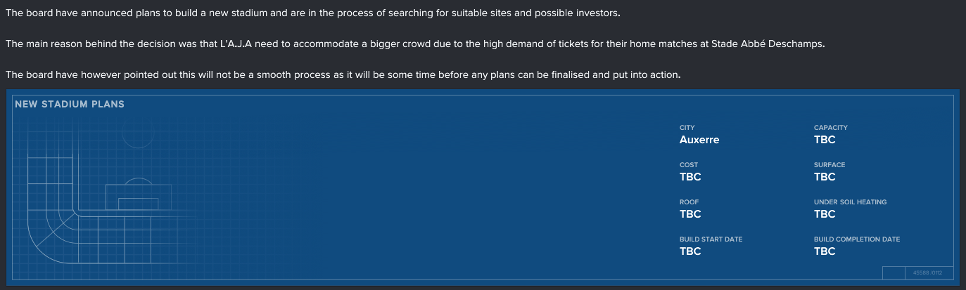 Over the past few seasons, I’ve been pleading with the board to upgrade facilities to improve the level of youth for our team and to help them reach their potential. They’ve sometimes taken a bit of convincing, but they’ve done it in the end. Our Youth Facilities, Junior Coaching and Youth Recruitment are all at their highest levels. Training Facilities are also undergoing massive work, which is underway and has a two year development. I suspect this will take it up to the top level.
