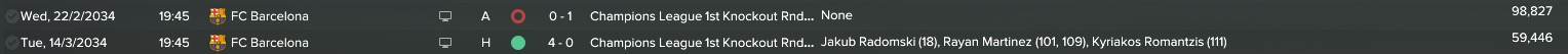 Nothing wrong with a challenge though. First game at Camp Nou did not go to plan, losing 1-0, but I knew I had a chance back in France. 18minutes into the return leg and we’d evened it up. Barcelona were employing the 4141, sitting deep and hoping to hit us on the break, it was a tactic I was facing more and more. They weren’t very good at it, but they were defending very well. End of 90mins, 1-1 on aggregate.