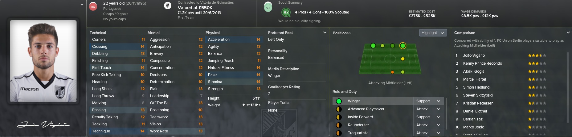 News just in! I’ve signed Vigário from above to play at left back, cost me £400k! His ability to play left midfield makes him a great addition.