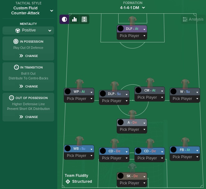 Nobody will be surprised by this, if you’re new, read old posts and you’ll get why I play 4141. I actually started off playing a 4411 which went quite well. We played a counter attacking style and I was quite happy with it, but at some point during the season I was unhappy with our play and switched back to 4141. I prefer to play with a defensive midfielder and I felt I missed that in the team, despite things going quite well for us in the league. My setup has changed as the season has gone on and players have come and gone from the team.