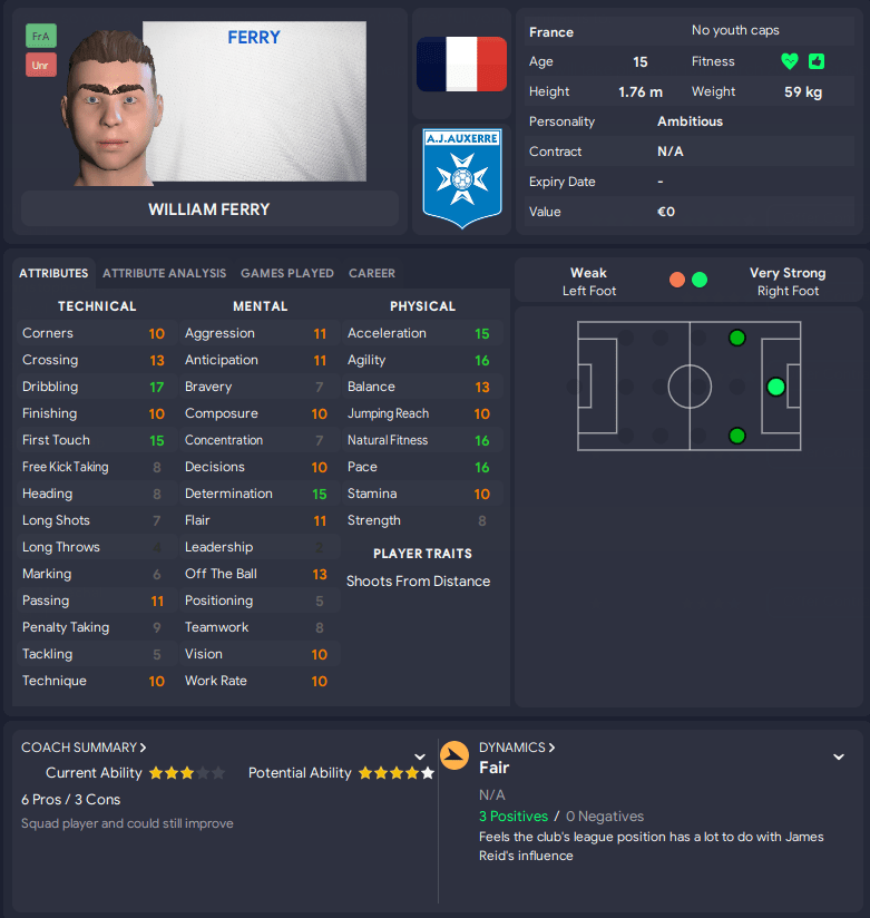 It’s not all about signings though, the youth intake is also a time that brings new players to the team. Auxerre have produced plenty of talented players in the past, this year was no different. There’s a few good players on the intake, but I’d have to say that William Ferry is star of that new group. He’s only 15, but I’m sure I’ll be writing about him in the future.